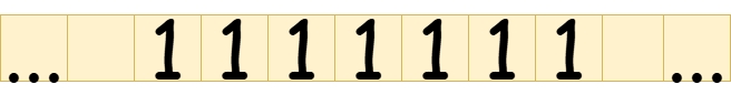 As you can see, we represented the decimal number by writing seven s side-by-side. On the left and right of the number are infinite tape cells that are blank.